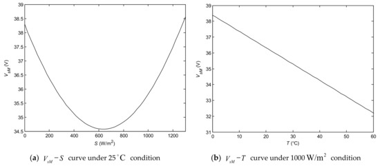 Secondly, the definition domain of can be considered. As is known to all, Equation (28) must be satisfied when the MPP of PV system exists.