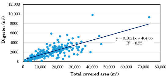Correlation between digester facilities areas and total covered area.