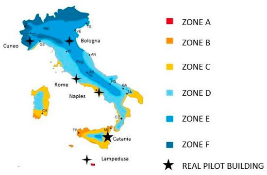 Different Italian cities representative of various climate conditions, ranging from very hot (zone A) to very cold (zone F) according to their Heating Degree Days (HDDs) (see Table 1), were considered for the sake of understanding the specific design requirements in each climate. Although HDDs do rigorously account only for air temperature and not for relative humidity conditions, a comparison with other European contexts showing similar HDDs can preliminary inform on the most appropriate design choices (e.g., insulation type and thickness) to guarantee energy savings while avoiding condensation issues.