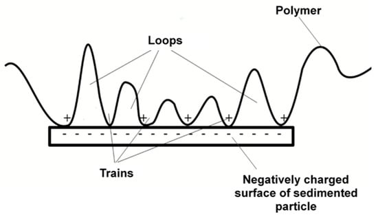 The affinity of a single train may not be very strong, as there are more sites of interactions. Long-chain non-branched polymers are preferred for effective bridging, as this increases the possibility of interactions with more than one particle in a dispersed suspension (Figure 4) [88].