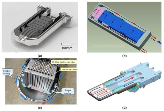 Different types of Spallation Neutron Target: (a) Spallation Neutron Target of ISIS; (b) Spallation Neutron Target of CSNS; (c) Spallation Neutron Target of PSI; (d) Spallation Neutron Target of SNS.