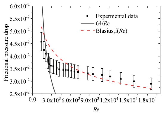 According to the equation and the uncertainty of the instrument, the relative error of is 4.8%. The relative uncertainty of the pressure difference meter is less than 0.7%, which results in the resistance coefficient f being better than 8%.