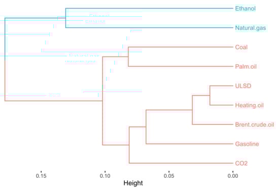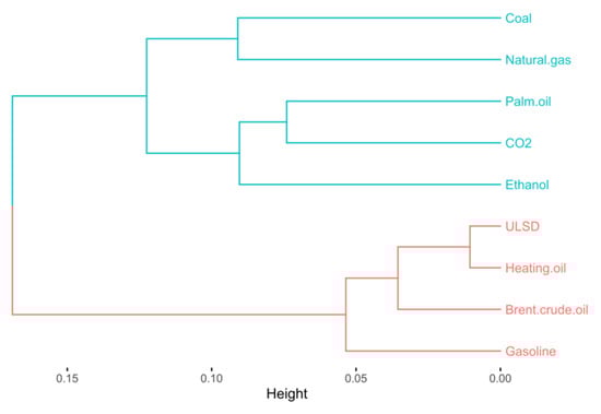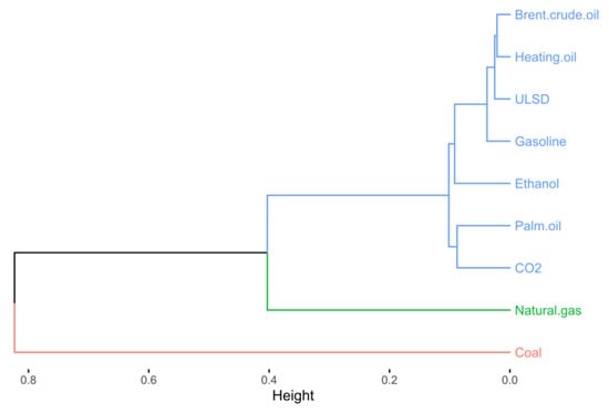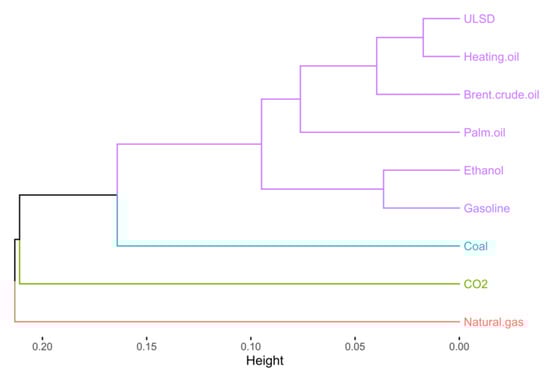 Our analysis also allows the grouping of energy commodities using a hierarchical clustering algorithm. We distinguish commodity clusters with respect to the three analysed subperiods. In general, it can be stated that commodities such as ULSD, heating oil, crude oil, and gasoline form a group weakly related to COVID-19, while coal, natural gas, palm oil, CO2 allowances, and ethanol are strongly connected.