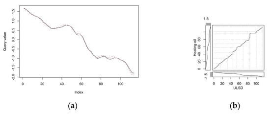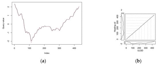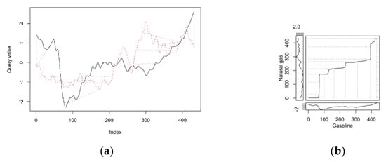 To compare the time series for COVID-19 cases and for energy commodities prices, we use the Dynamic Time Warping (DTW) distance method. It calculates an optimal match between two given time series, performing nonlinearly in the series by stretching or compressing them locally in order to make one resemble the other as much as possible. This distortion (called warping) allows an adjustment of the time axis to find similar but phase-shifted sequences [].