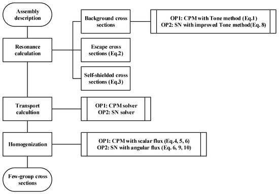 Originally, the CPM was used in the TULIP code for the resonance and transport calculation. In the resonance calculation, Tone’s method [20] was applied in order to obtain region, nuclide, and energy group-wise background cross sections, as shown in Equation (1)