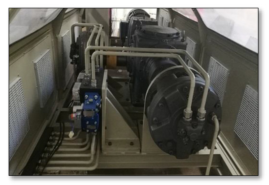 Figure 12 shows the system hydraulic conversion energy generation module, which includes various valves, pumps, variable motors, and their actuators. The module turns sea current energy, which is difficult to control, into easily controlled hydraulic energy; adjusts the displacement of variable motors using intelligent control algorithms; transforms the disorderly input of quantitative pumps into the constant speed output of variable motors; and finally converts the transmitted mechanical energy into smooth electrical energy through synchronous generators.