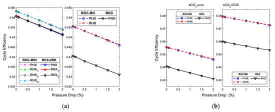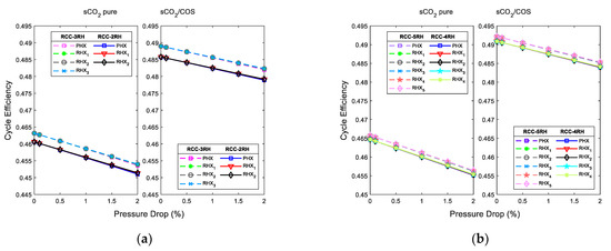As shown in Figure 6, an increase in pressure drop has a detrimental effect on the thermal efficiency of the Brayton s-CO2 cycle by reducing the gap between reheat and no-reheat configurations [39].