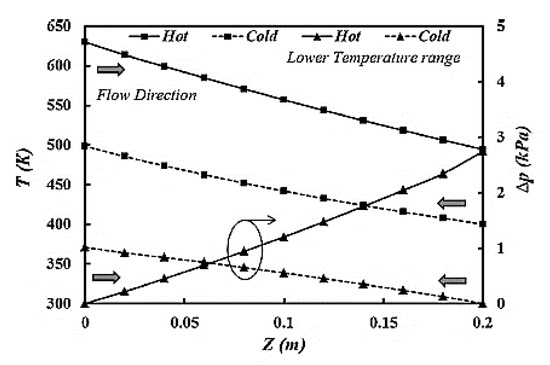 The cold fluid properties were obtained for operating parameters of and , while for the hot fluid, they are and .