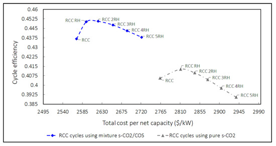 The better overall performance of the s-CO2/COS, therefore, seems contradictory, but there is a relation between the recompression factor and efficiency: