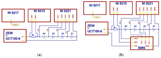 Measurement system: (a) without the BMS; (b) with the BMS.