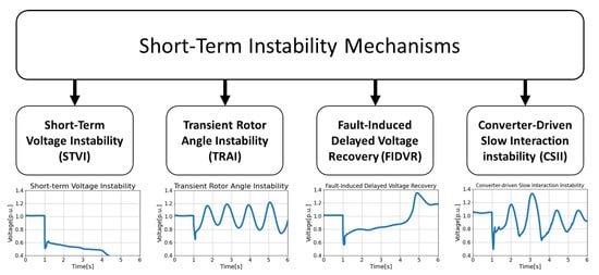 In this paper, the wider term of short-term instability is divided into four distinct phenomena: short-term voltage instability (STVI), transient rotor angle instability (TRAI), fault-induced delayed voltage recovery (FIDVR), and converter-driven slow interaction instability (CSII). All of these phenomena are categorized as separate short-term instability events in the most recent power system stability definitions [4]; hence, the division fully reflects those definitions. Furthermore, all four phenomena are often inherently related and they occur in a similar time scale. A more detailed explanation in this regard is presented further in the paper.