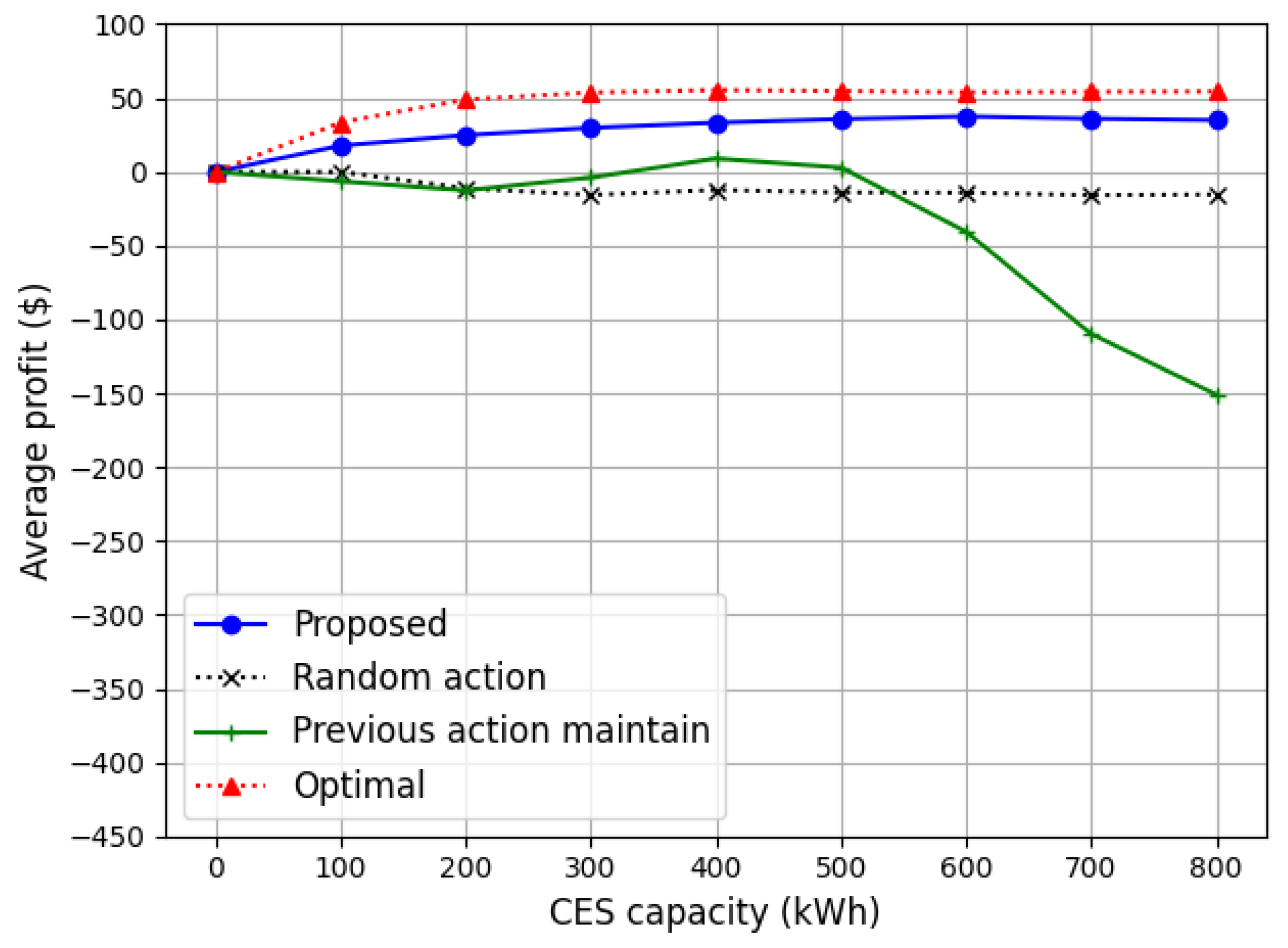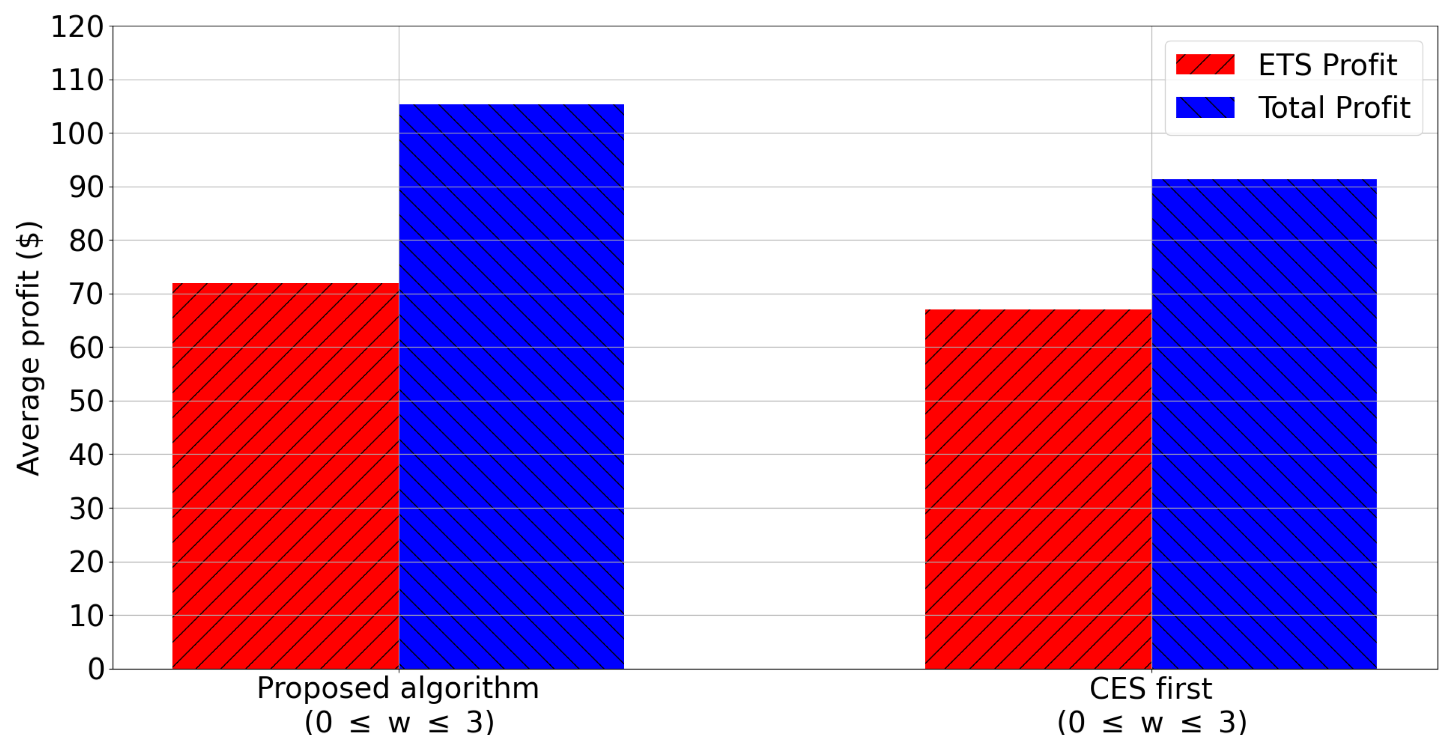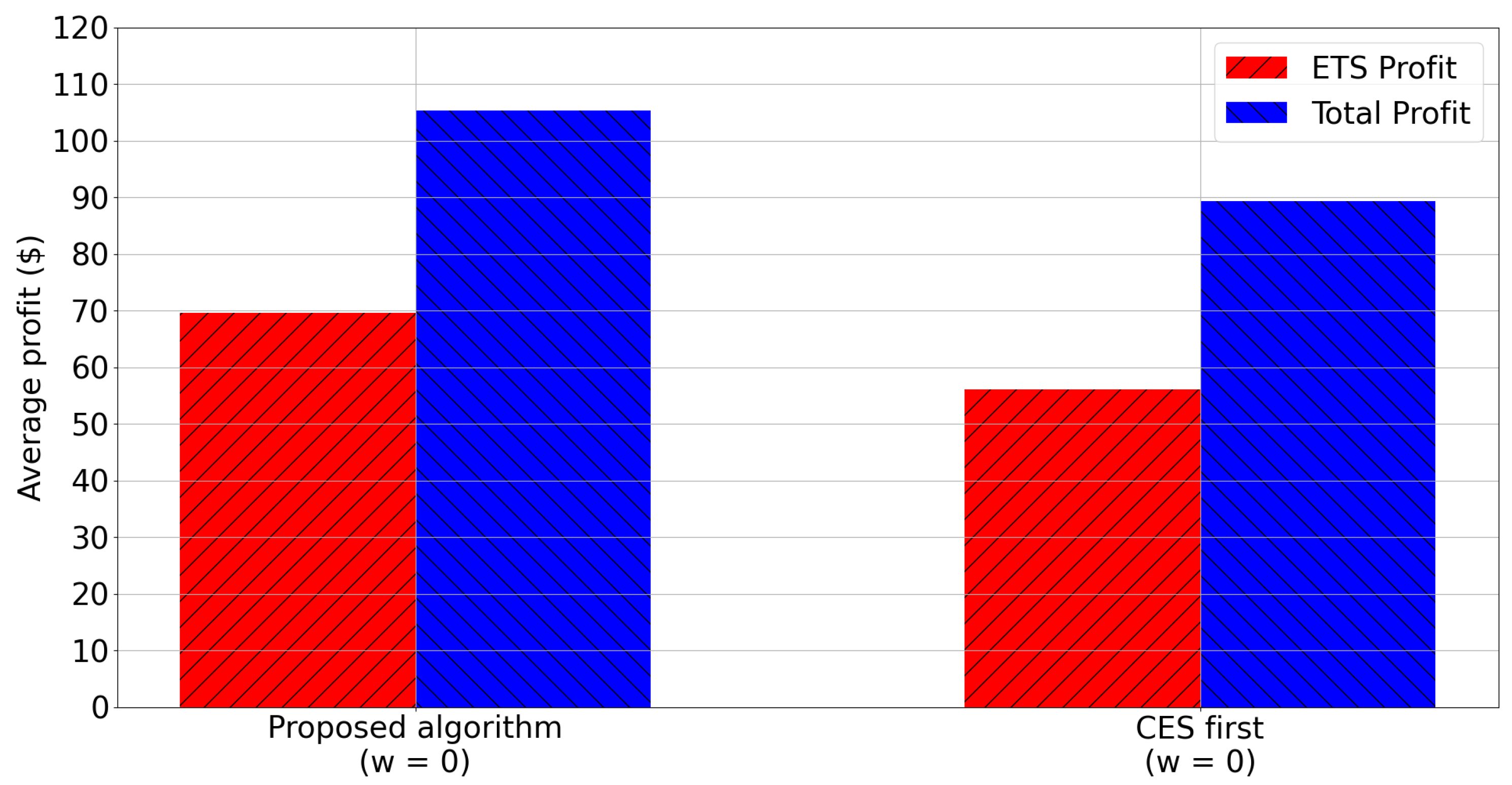 - The total profit of the proposed energy management algorithm is $105.34 per day. If CES is used in the real-time trading phase, the total profit decreases to $89.37 per day.