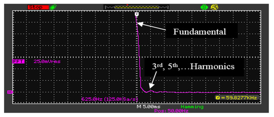 Figure 11 reports the FFT waveform of the output current for 100% of the rated output power (i.e., 120 W). As observed, the THD value is good which is within the standard limit. Besides, Figure 12 presents the FFT waveform of the output current for 10% of the rated output power (i.e., 12 W) with THD value of 6%.