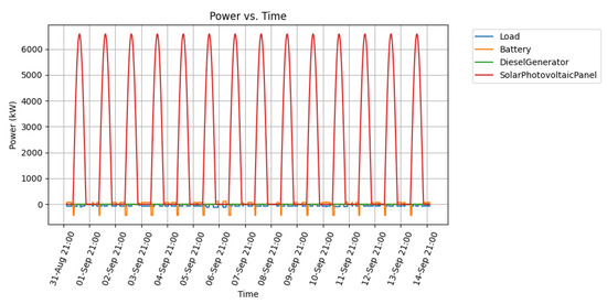 Operating solely on solar energy is not possible, because power loads exist at night. The most extreme photovoltaic power rating identified is 8520 kW, accompanied by a 851 kW·h BESS rating . The power profile is shown in Figure 7.
