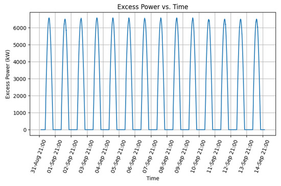 Excess power is available, primarily during peak sun hours after the BESS reaches a full state of charge, as shown in Figure 15.