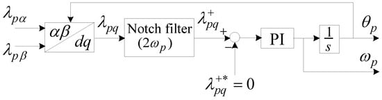 To achieve an accurate reference frame transformation, the PLL must only recognize the positive sequence primary flux [42]. Therefore, a notch filter was applied and tuned at twice the line frequency to remove the negative sequence components (Figure 8).