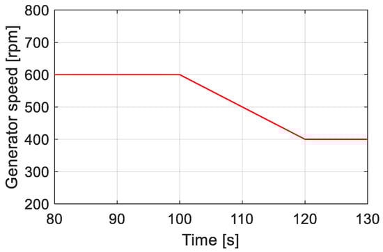 In order to test the performance of the proposed control during operation under variable speed and loading conditions (load change in accordance with (52)), the speed mode change from super to sub-synchronous was analyzed. The test was conducted with the maximum power point tracking (MPPT).