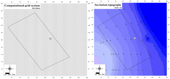 Furthermore, this model is evaluated and found to be appropriate to calculate the marine physical forces affecting sunken vessel artificial reefs, given that diffraction effects on islands and structures are reflected. This model considers advection in spatial coordinates during diffusion, refraction due to water depth and flow, shoaling due to water depth and flow, wave blocking, reflection, and diffraction by obstacles, wave energy dissipation by wind, wave energy dissipation by white capping, wave breaking, and bottom friction, and energy exchange by non-linear interactions. Figure 1 shows the computational grid and topography of the sunken vessel deployment location and considered area for running the SWAN model.