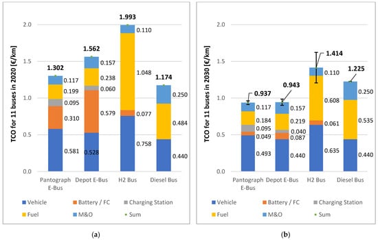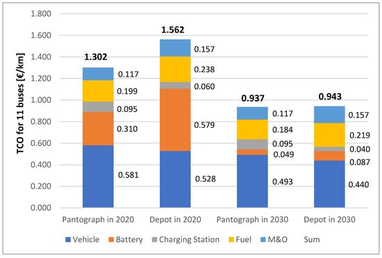The total cost of ownership (TCO) has been identified as one of the main decision factors for the viability of investment for all types of buses [18,24]. TCO considers all expenses linked to owning and operation of public buses and is used to calculate the cost experienced during the entire life cycle [19,24].