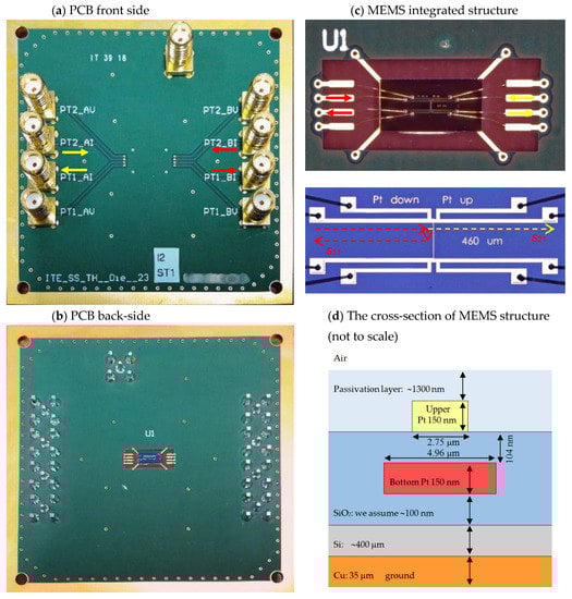 - Janicki, M.; Pietrzak, P.; Topilko, J.; Zając, P.; Sobczak, A.; Jablonski, G.; Janus, P.; Prokaryn, P.; Napieralski, A. Measurement and simulation of MEMS dedicated to investigation of heat transfer at nanoscale. In Proceedings of the 2018 19th International Conference on Thermal, Mechanical and Multi-Physics Simulation and Experiments in Microelectronics and Microsystems (EuroSimE), Toulouse, France, 15–18 April 2018; pp. 1–4. [Google Scholar]