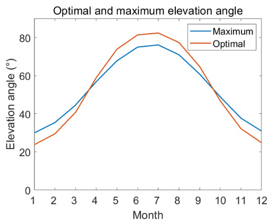 In this study, only the daily accumulated optimal height angle was shown. For a fixed solar placement, it can also be used to calculate the annual cumulative optimum angle. In addition, when the local geographic and climatic factors do not affect the visibility of the Sun, one can directly use this model to calculate the optimal tilt angle. Since there is a general tendency in industry to use refined and simplified models, a more concise model that can be numerically described clearly in one or two equations can be proposed in the future and be generalized in the calculation of the tilt angle of solar collectors. Otherwise, in practical applications, factors such as atmospheric refraction, mountain blockage, and local climate should also be taken into account.