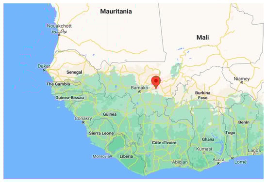 The methodology introduced in the previous section was applied to a case study of an autonomous microgrid currently in installation in the rural localities of Sanando and Tissala in Mali, shown on a map in Figure 5. This microgrid project was enabled by the Energizing Development Program (EnDev) and coordinated by GIZ together with AMADER and the municipality of Sanando. This project aims to build a hybrid power station including a solar PV array, a diesel generator (Genset), and a battery storage system (ESS + PCS) connecting both villages. The operation and maintenance of the microgrid will then be carried out by a consortium including Entech Smart Energies and Sinergie SA. There was initially no electricity grid available to inhabitants, some of them relying on individual solutions (gensets or small solar systems).