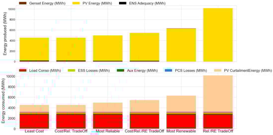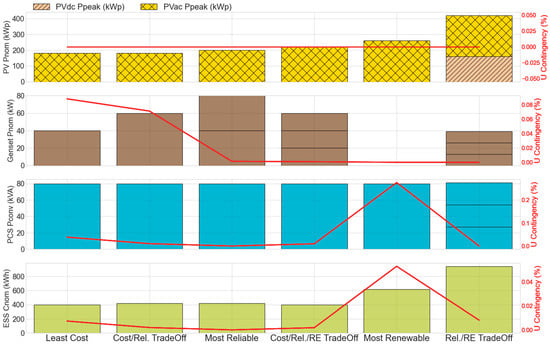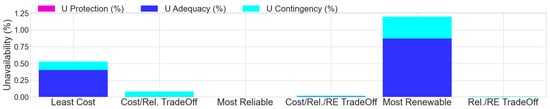 - Reliability/RE trade-off: The configuration with the highest renewable integration and unavailability less than 0.1%.
