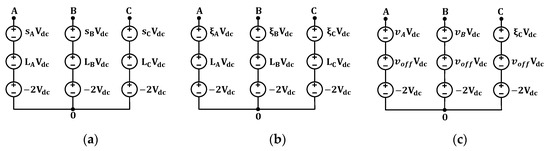 The instantaneous normalized switching voltage of phase leg A () in (4), phase leg B () in (5), and phase leg C () in (6) can be decoupled into 2 components.