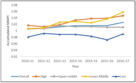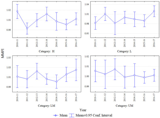 . In this analysis, countries are categorized into four groups according to their income level. Thus, the whole sample has four subgroups with different technological possibilities. To calculate the MMPI, Oh and Lee [
