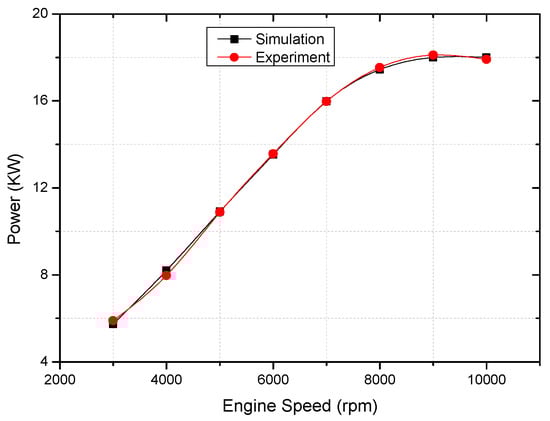 Engine power results are demonstrated in Figure 7. The best engine power was 18.11 kW at 9000 rpm. The phenomenon in both cases was not out of our prediction, with the differences being less at each speed of the engine and only a 0.59% difference being reported in the indicator as the highest value difference.