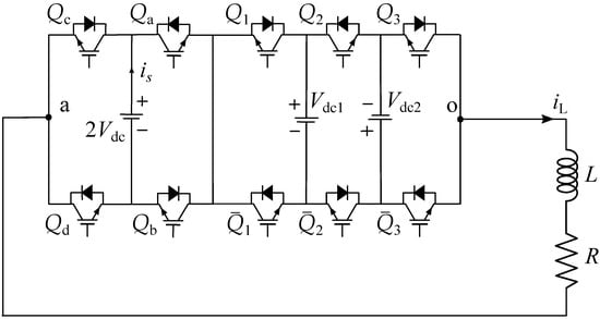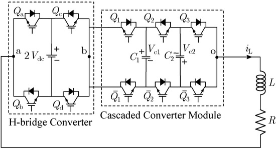 Over recent decades, multilevel converters (MLCs) have found popular in high-power applications. The reasons for their widespread acceptance are the capability to share the high-voltage stresses among the devices, low conduction and switching losses, and improved power quality with minimum harmonic distortion [1,2]. An attempt to enhance the power quality to IEEE standards, i.e., 5% current total harmonic distortion (THD), necessitates the generation of higher output voltage levels of the converter. However, the increase in output voltage level requires more components and floating capacitors, which results in increased cost and size of the converter system. Hybrid converter topologies as a combination of the conventional converters have achieved great attention from researchers [3,4,5] due to their minimum requirement of components count. The hybrid converter is the cascade arrangement of dissimilar converters, which reduces the necessity of component requirements for the same output voltage levels.