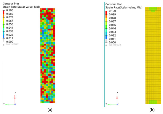 With the parameter it is possible to control the response of the filter. If = 0, no filtering is applied. Values close to 1 apply a strong low-pass filter. Figure 7b shows the result of applying the strain rate filtering. It leads to a smoother strain rate distribution and more realistic behavior within the FE model. The strain rate filtering plays an important role in explicit time integration.
