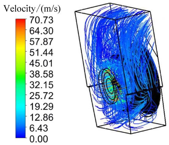 In order to describe the fluid distribution in the fluid domain, the calculated fluid trace distribution in the end region of the condenser is shown in Figure 7. According to the fluid trace distribution, most of the cooling medium flows through the fluid domain from the condenser fan inlet, and then flows out through the stator air cavity after cooling the end stator winding, copper shield, clamping plate and other components.