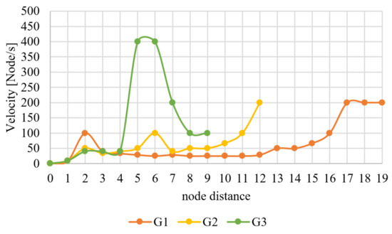 Appendix A for the derivation. The derivation and simulation results indicate that the RoCoF propagation speed increases at branch intersections (nodes with higher degree capacity) due to the higher transmission capacity (restoring property). The robustness of a high degree node is due to the diverse power flow paths and being better able to disperse the disturbance energy. The results led to further insight into the role of network topology in frequency transient stability.