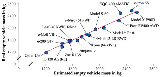 39], which lead to an above-average battery mass. Further inaccuracies occur with Tesla vehicles, whose electric machines have an above-average torque-to-mass ratio, which results in overestimation of these components.