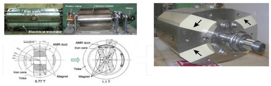 - Alahmer, A. Demonstrate for Rotating C-Shape Magnetic Refrigeration near Room Temperature. Appl. Mech. Mater. 2015, 704, 154–158. [Google Scholar] [CrossRef]