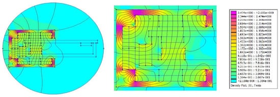 From the previous analyses of magnets designs using the FEMM program, the following points must be taken into consideration: (i) it is important to use a soft material to direct the flux lines in a certain area where the magnetocaloric material would be mounted; (ii) the design of the magnet must provide as a low volume of air gap as possible; (iii) the arrangement of the magnetic pieces (the direction of magnetization) in a manner to provide a maximum flux (lines) density in the magnetocaloric material region is recommended.