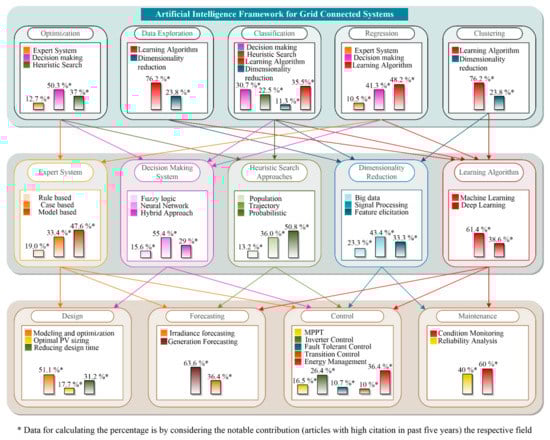 AI framework for different functions, and techniques in application with grid-connected PV systems.