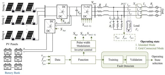 - Hmad, J.; Houari, A.; Trabelsi, H.; Machmoum, M. Fuzzy logic approach for smooth transition between grid-connected and stand-alone modes of three-phase DG-inverter. Electr. Power Syst. Res. 2019, 175, 105892. [Google Scholar] [CrossRef]