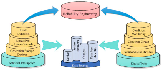 Further, with increasing access to the operating data of power system, AI implementation has seen a significant rise along with improved accuracy. Here, the data acquired are used to enable learning approaches with AI for identifying various complications and abnormalities in the system and taking an appropriate action within the stipulated time. In [15], a data-driven approach with a Bayesian ascent algorithm is implemented to achieve the target result by assigning target values for a wind farm operation. Further, the irradiance forecasting with the long short-term memory network is implemented in [16] for estimating the day-ahead mission profile for PV system operation. Theoretically, a mission profile handles the dataset related to environmental factors of a location (irradiance, temperature, humidity, etc.), energy estimation, annual power generation, and other graphical results. This dataset helps the PV system designers in identifying the operating conditions of the PV, and assists in extracting minimum, average, and maximum power outputs. Further, the authors in [17] develop a data-driven approach for power system security, to facilitate the identification of the false data injection in the system control. The research identifies that this process can be performed in online mode with the assistance of reinforcement learning approaches.
