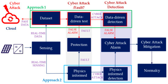 - Li, Q.; Li, F.; Zhang, J.; Ye, J.; Song, W.; Mantooth, A. Data-driven Cyberattack Detection for Photovoltaic (PV) Systems through Analyzing Micro-PMU Data. In Proceedings of the 2020 IEEE Energy Conversion Congress and Exposition (ECCE), Detroit, MI, USA, 11–15 October 2020; Institute of Electrical and Electronics Engineers (IEEE): Piscatavai, NJ, USA; pp. 431–436. [Google Scholar]