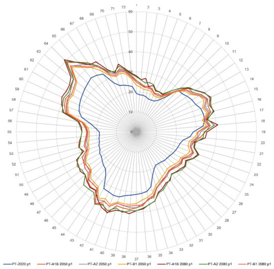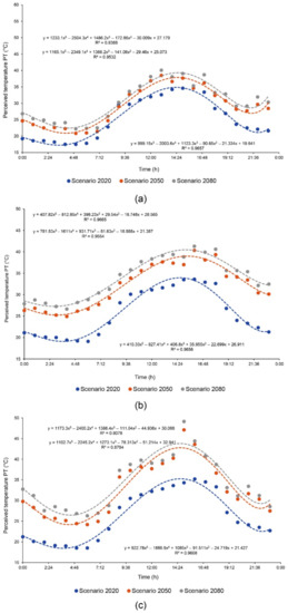 4.1. Perceived Temperature (PT) Index for Points 1, 2 and 3