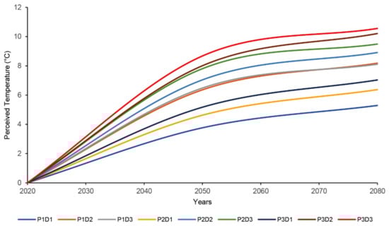 - Wang, S.; Zhu, J. Amplified or exaggerated changes in perceived temperature extremes under global warming. Clim. Dyn. 2020, 54, 117–127. [Google Scholar] [CrossRef]