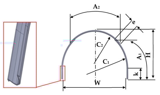 For the purposes of the work, it was assumed that the shape of the excavation will be mapped by the arch support type ŁP10, with the main geometric dimensions listed in Table 2. The ŁP10 arch support is an actual element of the support used in the discussed underground excavation.