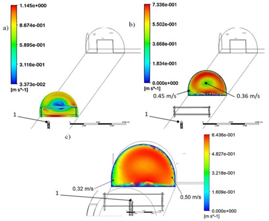 - In order to minimize COVID-19 spread in underground excavations, especially the most penetrating droplets in the range of 80–110 μm, as shown by the results of the numerical studies (Figure 14d,g), it should be used a local mechanical intensification of the ventilation of underground excavations and the use of air purification systems, the basic structural element of which are the non-woven fabrics filters, characterized by an extensive spatial structure;