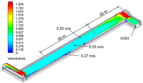 The influence of the occurring disturbances in the process of fluid transfer, in the space of a given geometry, was interpreted by the k-ε turbulence model. The use of the k-ε turbulence model can be considered in the case when the level of accuracy can be acceptable and tolerated in simulation []. The solution of this model is to determine the value of turbulence viscosity, μt, using the kinetic energy, k, and the dissipation rate, ε, associated with the energy dissipation caused by the occurrence of internal movement resistance of the flowing fluid along the underground excavation. The viscosity model of the turbulence, μt, of a flowing fluid is expressed by an equation defined in the following form [,,]: