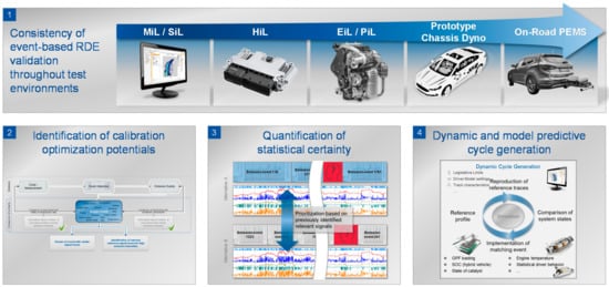 - Hipp, J.; Schmidt, D.; Bauer, S.; Steinhaus, T.; Beidl, C. Methodikbaukasten zur effizienten, zielgerichteten RDE-Entwicklung—Potenziale und Perspektiven. In Simulation und Test 2018; Liebl, J., Ed.; Springer Fachmedien Wiesbaden: Wiesbaden, Germany, 2019; ISBN 978-3-658-25293-9. [Google Scholar] [CrossRef]