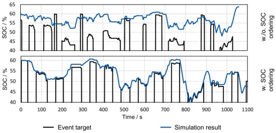 The model environment there comprises only the driving environment and the vehicle, while the engine, clutch, transmission and differentials are present as real components. In the EiL setup, the modeling is supplemented by differentials, transmission and clutches; only the engine is operated as a real component on the test bench with a load machine []. For the HiL setup, the entire vehicle is typically simulated, including all drive components and, if required, also the emissions. The ECU or HCU are coupled with the simulation as real components [,]. The highest virtualization level is used in the MiL or Software-in-the-Loop (SiL) setup. There, all components including the control units are simulated.