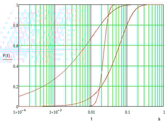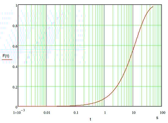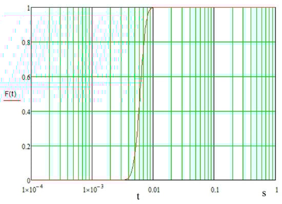 The form of the limit distribution function of the information delivery time is represented in Figure 6.
