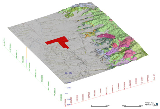 - Kirby, S.M. Revised mapping of bedrock geology adjoining the Utah FORGE site. In Geothermal characteristics of the Roosevelt Hot Springs System and Adjacent FORGE EGS Site, Milford, Utah: Utah Geological Survey Miscellaneous Publication 169; Allis, R., Moore, J., Eds.; Utah Geological Survey: Salt Lake City, UT, USA, 2019; p. 6. [Google Scholar] [CrossRef]
